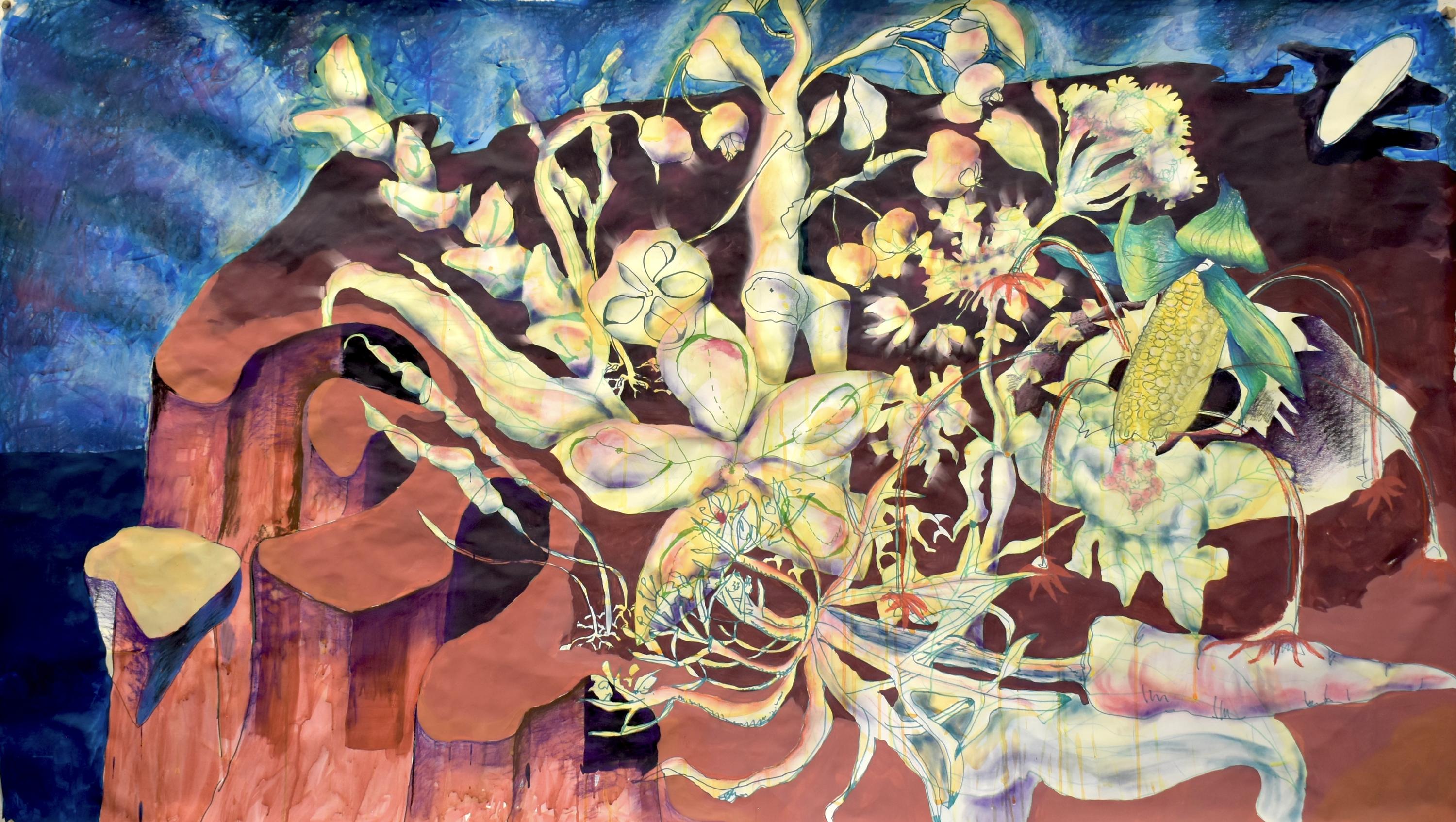 Oil and watercolor on paper