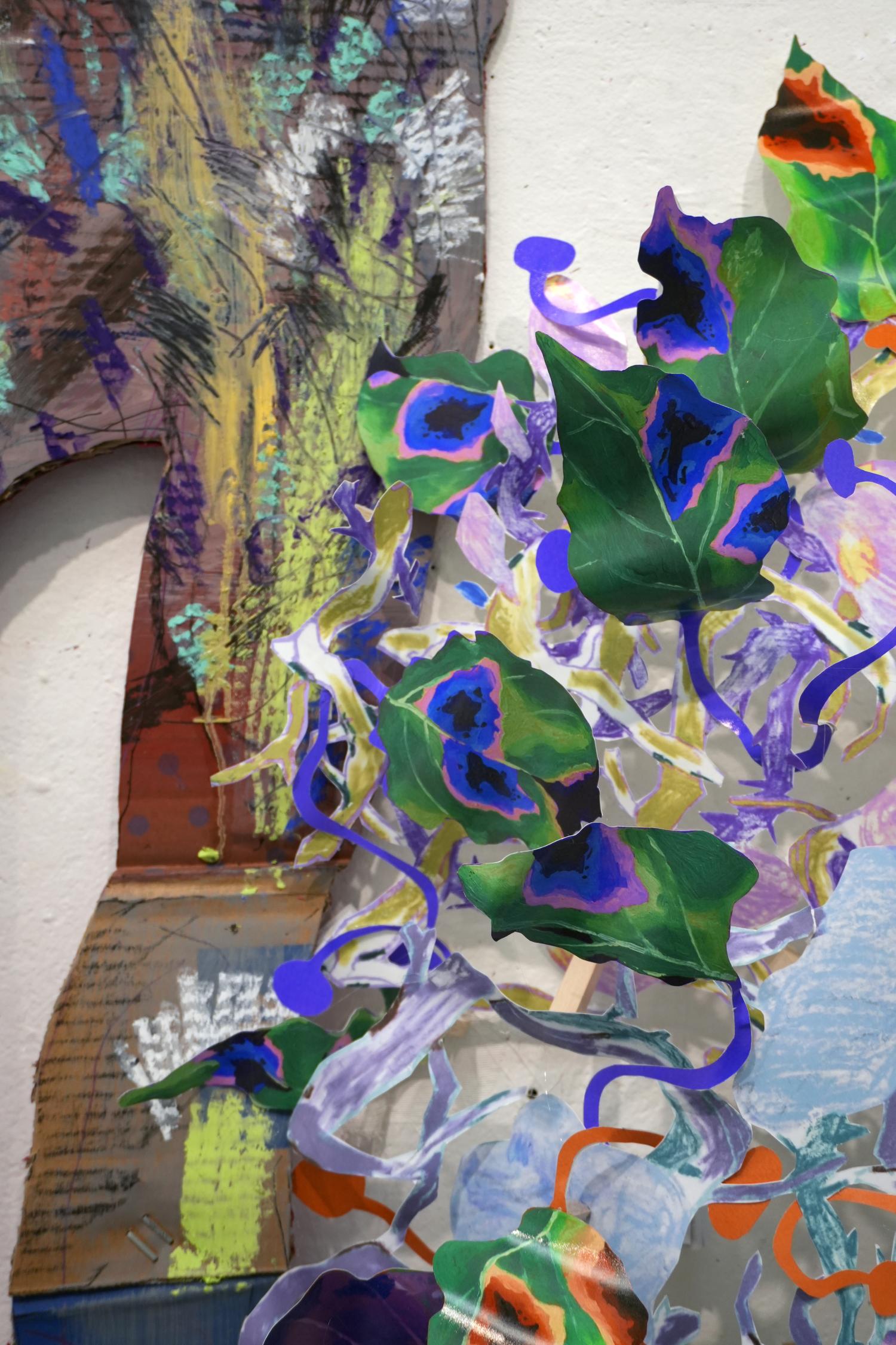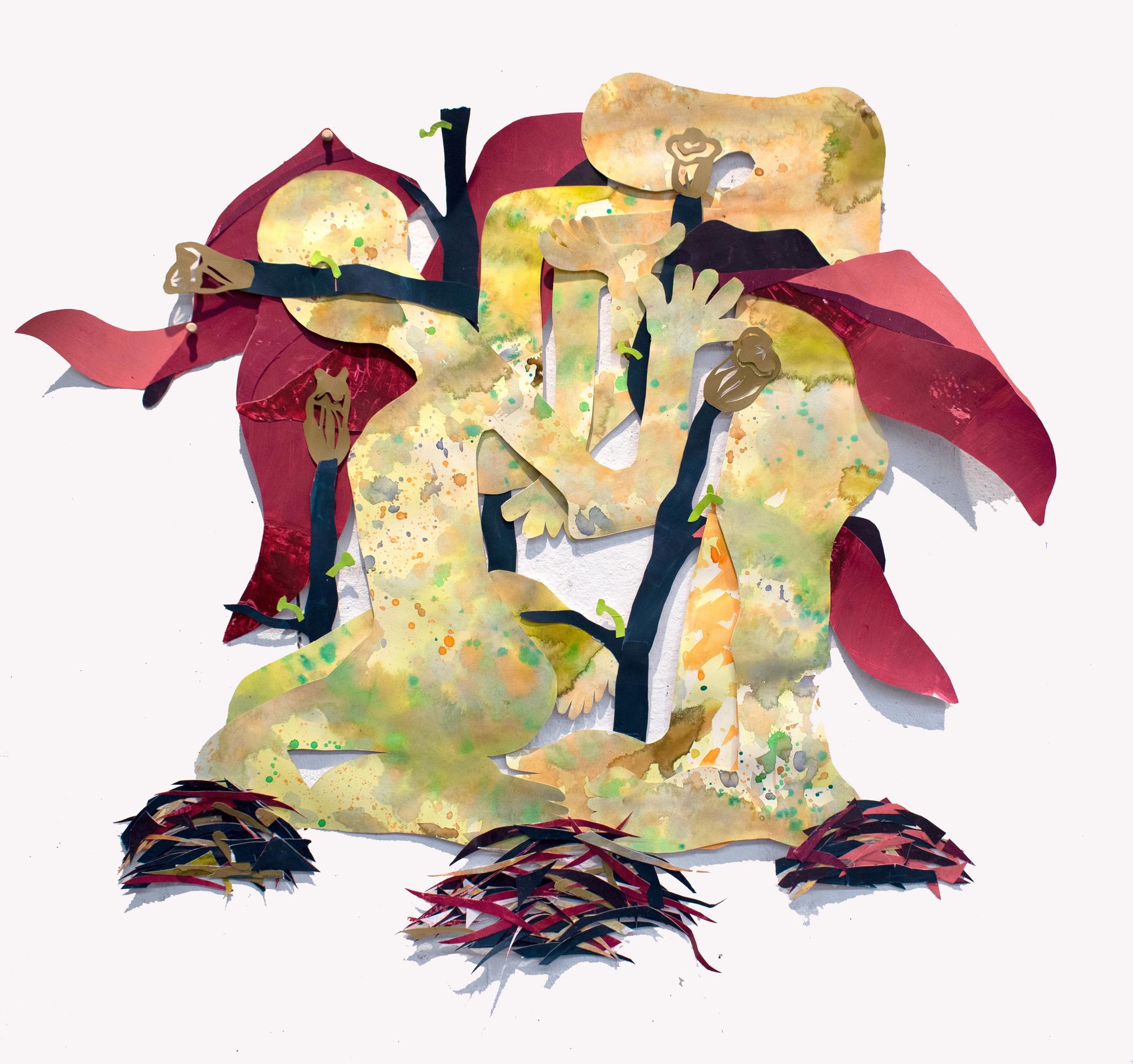 Acylics, sharpies, color pastel on paper